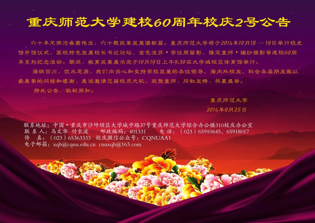 10月重庆师范大学建校60周年校庆公告