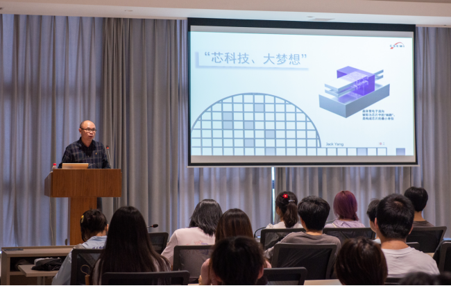 两江新区半导体研究院院长杨利华以“芯科技,大梦想”为题,向同学们做了专题讲座。他深入浅出地介绍了重庆市电子信息产业发展现状,对我国芯片行业“卡脖子”的具体情况进行了详细说明,勉励同学们学好专业知识,拓展行业视野,担负起科技创新、芯片报国的使命。