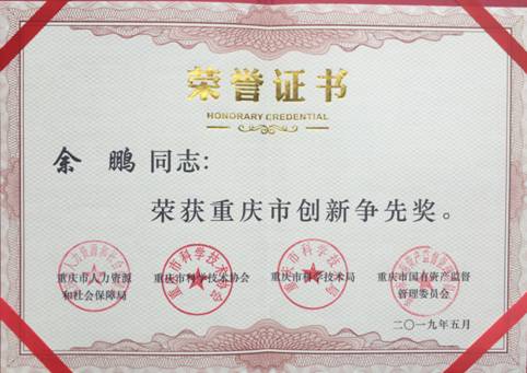 【报佳音】我院余鹏老师被评为“重庆市创新争先先进个人”,获“重庆市创新争先奖”!