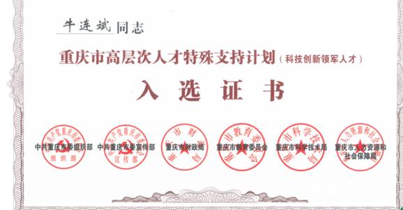 我院牛连斌老师当选为2018年重庆市科技创新领军人才;