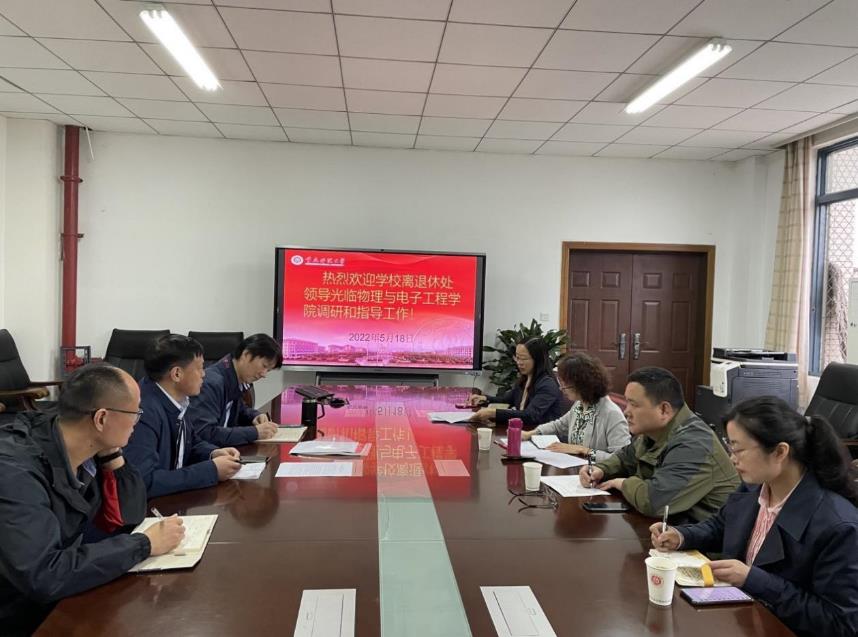 为更好的促进校院两级离退休教职工的服务与管理工作,5月18日学校离退休处处长刘艳、副处长宁召峰、李玉平、办公室主任周珊珊一行到我院开展离退休工作的调研工作。学院党委书记杨云,副院长(主持工作)余鹏,工会主席范嗣强以及办公室主任辜永红参与调研会议。
