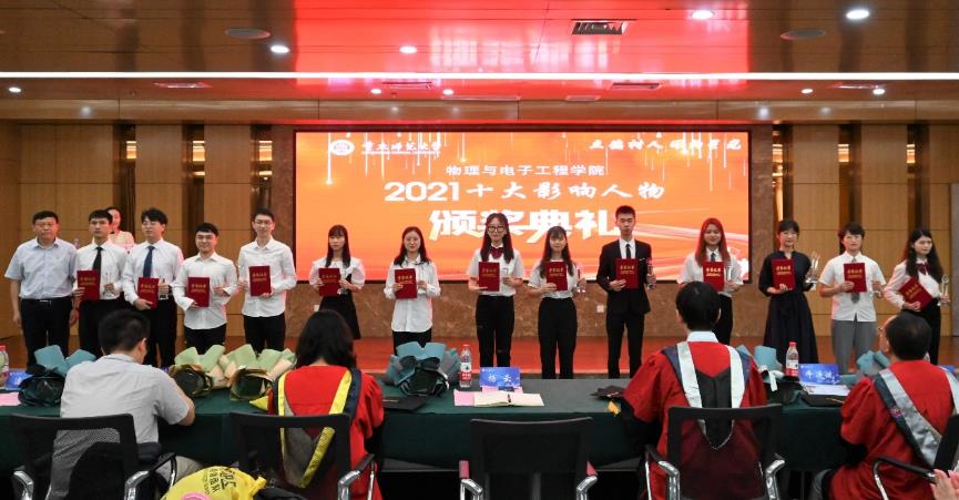 典礼开始,杨云书记为获得学院2021年“十大影响人物”荣誉称号的同学们颁发了奖状和奖杯。接着毕业生们观看了2022届毕业生毕业纪念视频,回忆了大学四年的点点滴滴。