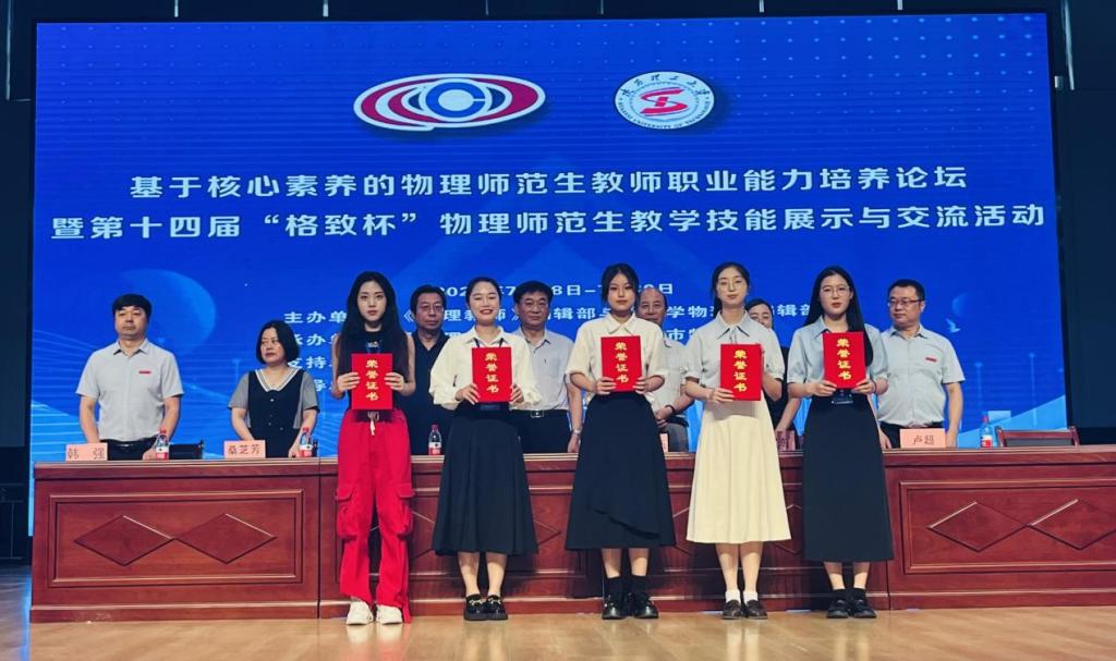 据悉,“格致杯”是目前国内物理教学举办最久,参与最广,影响最大的全国高水平的大学生物理教学技能比赛,旨在以评促建、以评促改、以评促强,交流物理学师范类专业人才培养经验,促进物理学师范生的全面发展。本次比赛来自北京师范大学、华东师范大学、华中师范大学、华南师范大学等全国101所高校,近800名本科生、研究生参与了展示活动。近年来,物电学院高度重视师范生素质培养和技能训练,在田家炳杯、川渝杯等教学技能比赛中均获得了一等奖的好成绩。