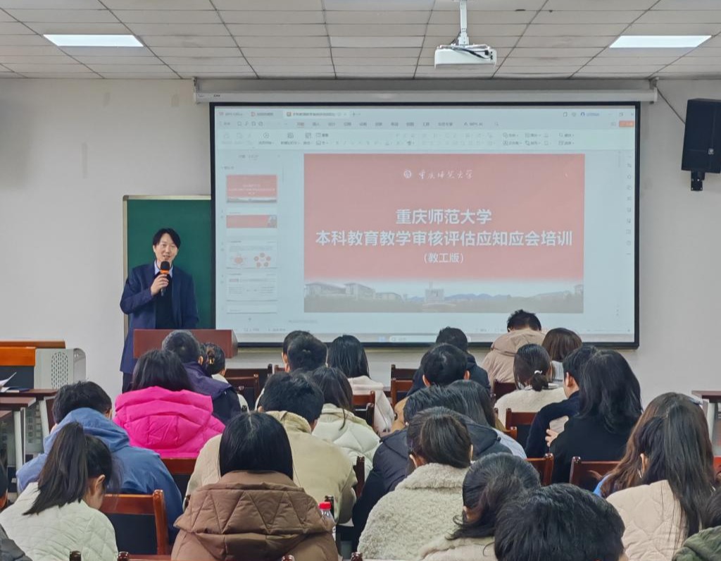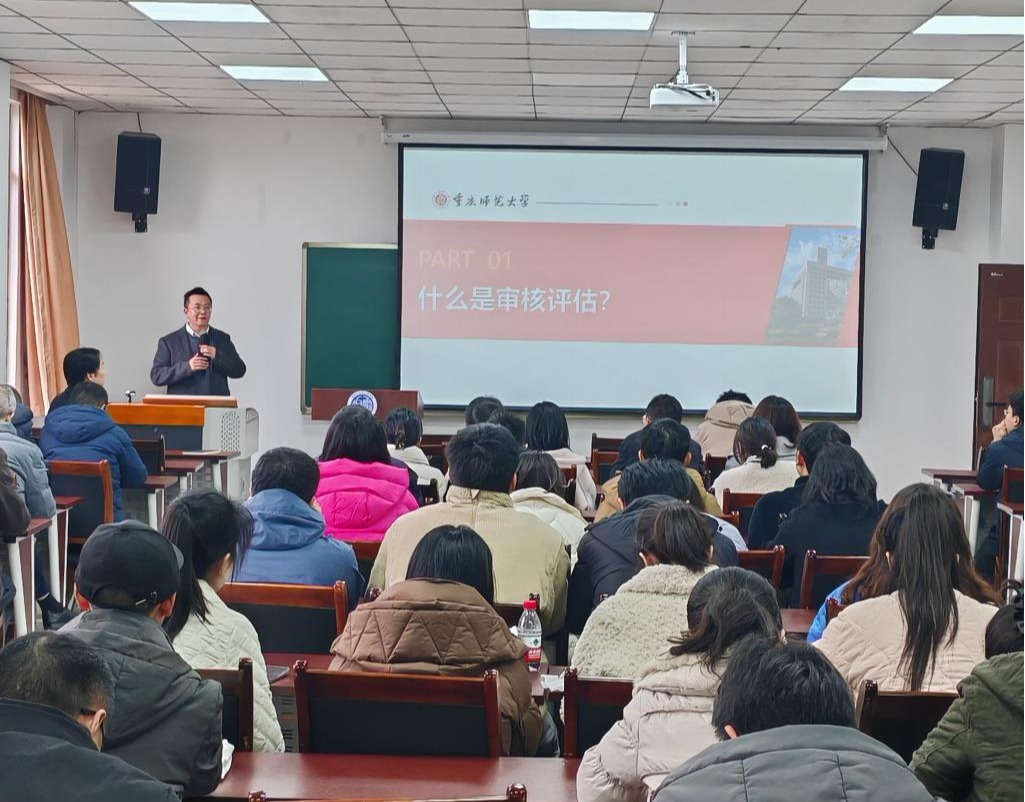 3月6日下午,PA视讯在集贤楼511会议室召开本科教育教学审核评估工作专题培训会,会议由院长余鹏主持,副院长罗海军主讲,学院全体教职工参加。