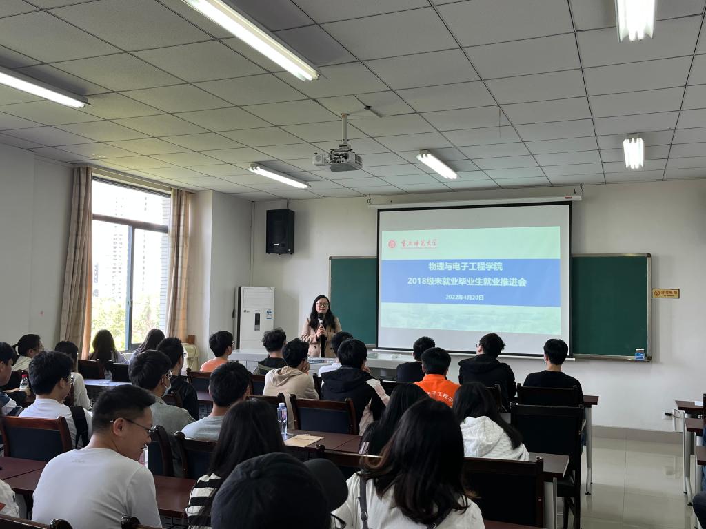 为切实推进学院就业工作,为未就业毕业生生提供更精准的就业指导,物理与电子工程学院于2022年4月20日下午在集贤楼531会议室开展了2022届未就业毕业生就业推进会,此次会议由2018级辅导员杨阳老师主持。