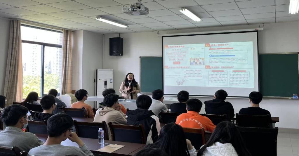 随后,学院团委书记余海蔚老师向大家介绍了大学生志愿服务西部计划。余老师用11级学姐的生动案例,向未就业学生展示了“奔赴基层,曲线就业”的发展可能性,鼓励同学们在基层接受锻炼,磨炼本领和意志,服务期结束后再选择。她还详细介绍了西部计划志愿者工作内容、待遇补贴、照顾政策等同学们关心的问题。最后杨阳老师重点介绍了我院下周将举行的线上专场招聘会筹备情况,在简历准备和求职技巧方面再次对同学们做出指导。