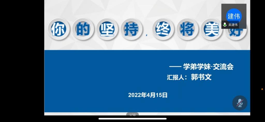 光电系主任吴建伟老师对经验交流暨研讨会进行总结:本次交流研讨会圆满成功,郭书文同学的分享交流对老师和学弟学妹都具有指导作用,希望目前正在大学学习的学弟学妹们以郭书文学姐为榜样,长江后浪推前浪,传承学院刻苦钻研,科学严谨的精神,继续为学院争光。以后还会邀请学院其他一些优秀毕业生为学弟学妹答疑解惑、分享交流经验!在场的同学们纷纷表示学姐的分享让他们收获颇丰,深受鼓舞,要以学姐为榜样,以梦为马,不负韶华!
