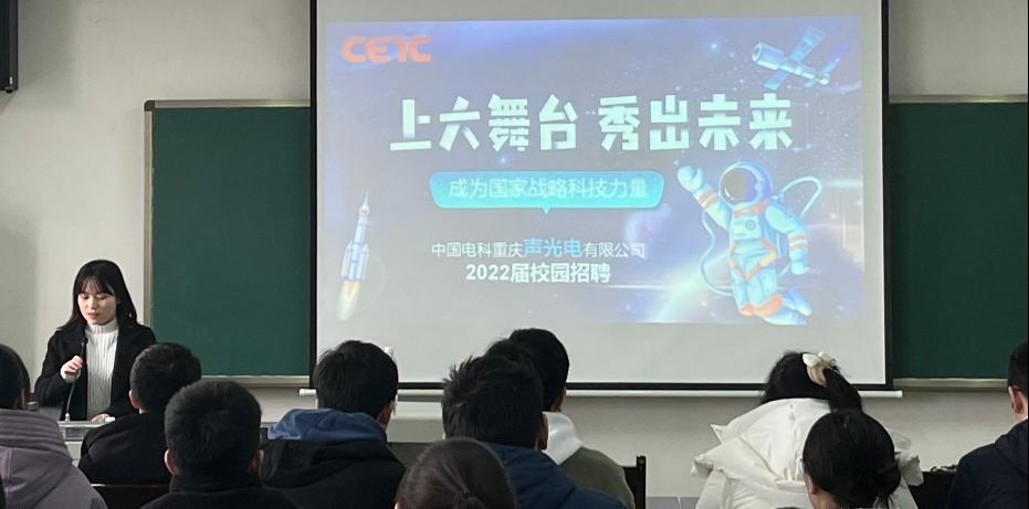 2022年1月5日下午14:30,PA视讯邀请中国电子科技集团重庆声光电有限公司来我院进行校园招聘宣讲会。此次招聘主要面向光电类、电子信息类的应届毕业生。
