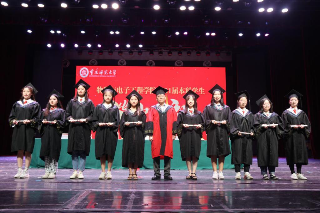 党委书记胡先成教授和副院长曾毅副教授宣布了重庆师范大学表彰优秀毕业生和授予本科毕业生学士学位的决定。紧接着院长崔玉亭教授为符合学位授予条件的同学授位并颁发学位证书并合影留念。
