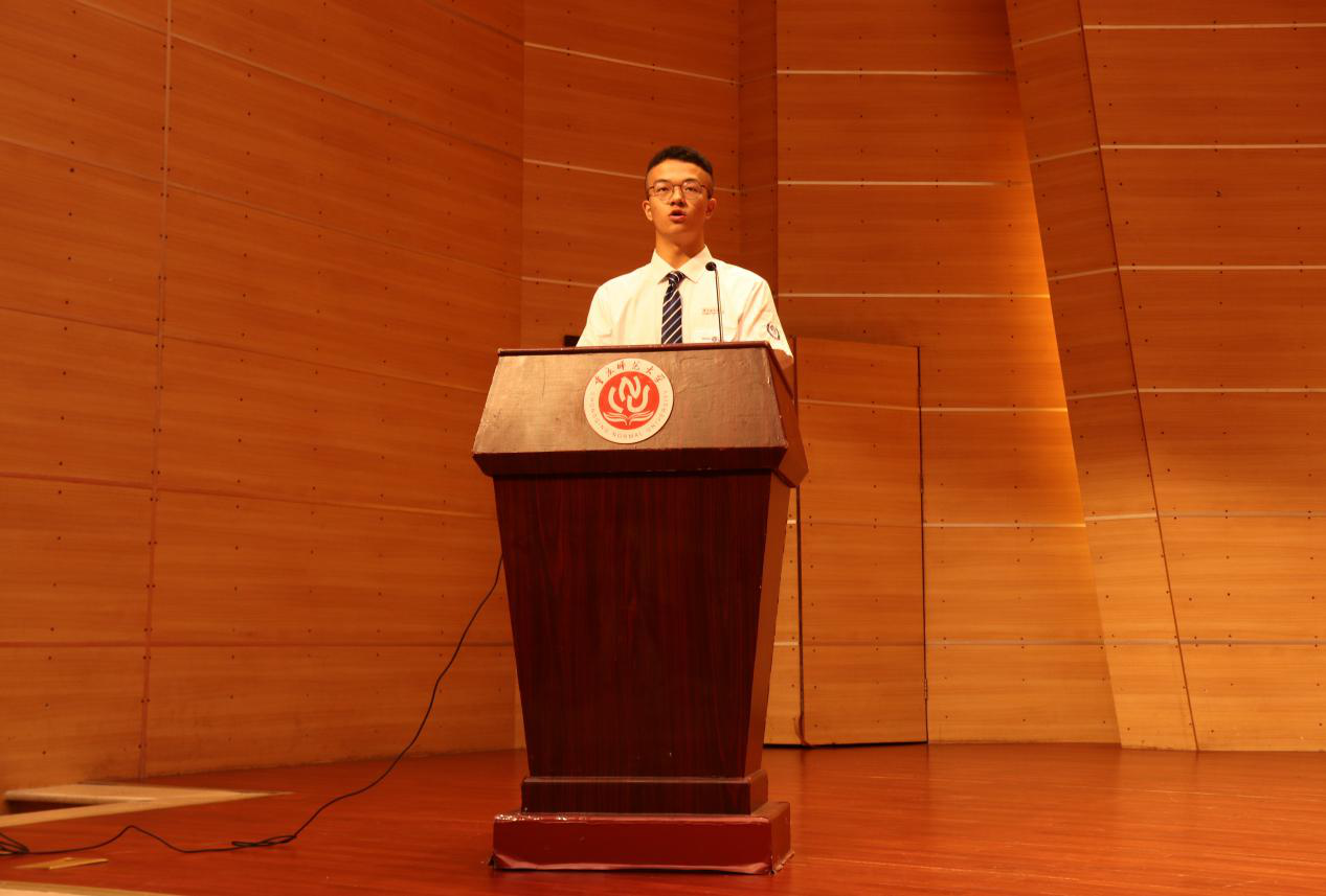随后,2020级新生代表冉申奥上台发言,表明他对未来的大学生活充满了信心,并希望同学们能秉承重师“自强不息,躬行师道”的精神在未来的学习与生活中开启光明。