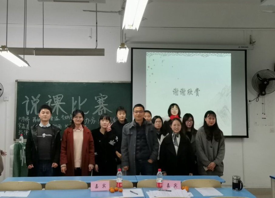 活动最后,毋志民教授和参赛选手们在现场进行了合影留念,主持人宣布理与电子工程学院师能素质协会第六届全校说课比赛圆满结束。