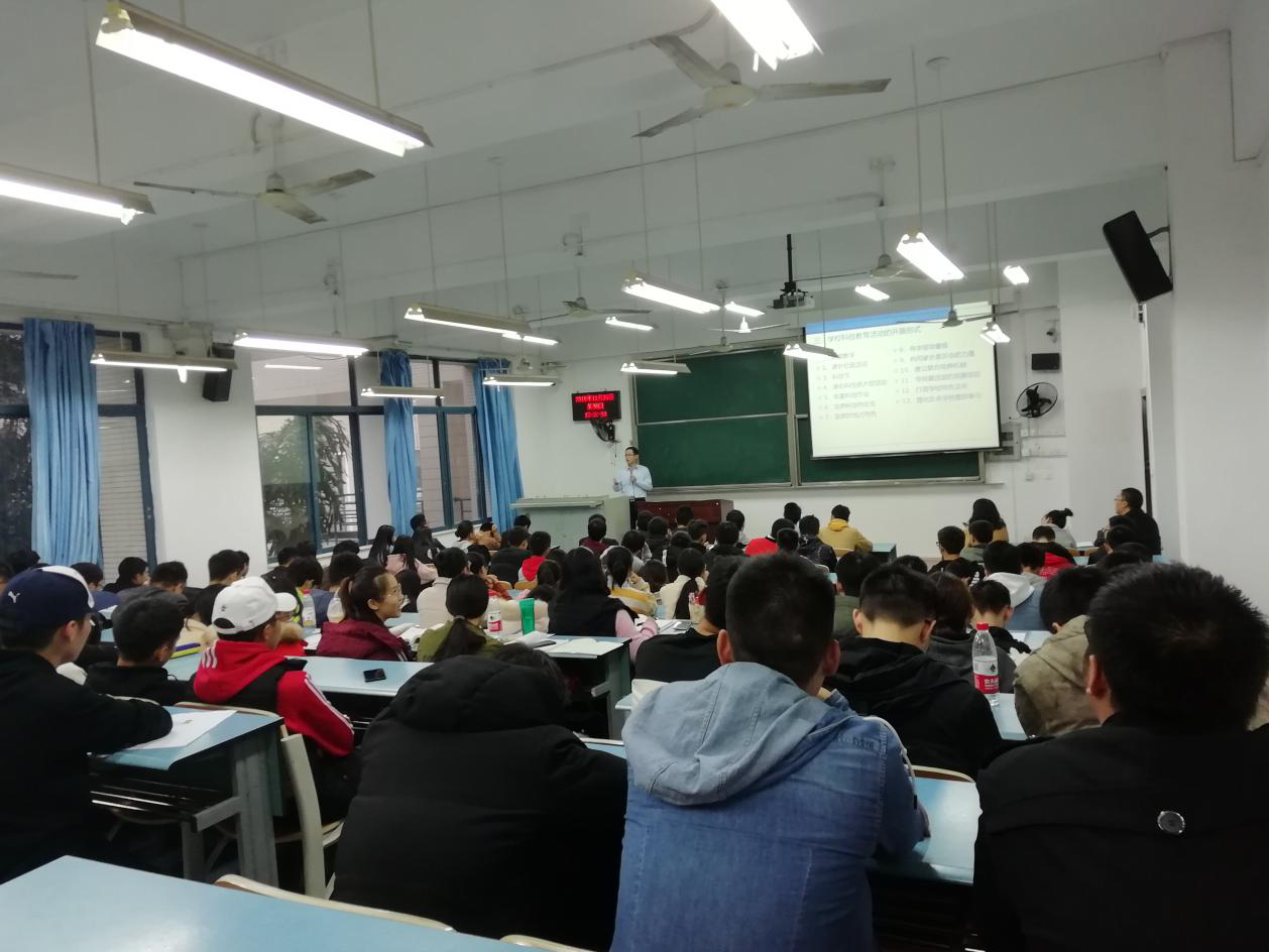为更好的切入主题,刘雅林博士首先提到作为电子专业的学生应该界定几个核心概念,即“科学、技术、科技活动、科技活动课程”并对这几个概念进行了对比联系,层层递进,促使同学们对科技教育有了更深入的了解。随后,刘校长表明从事科技教育活动的目的有三。其一为当前许多大学身的功利思想对科技教育活动的冲击,目前大多数毕业生都倾向于进入高薪资的大型企业而不甘于做一位科技教育者,致使科技教育者人才严重缺失。