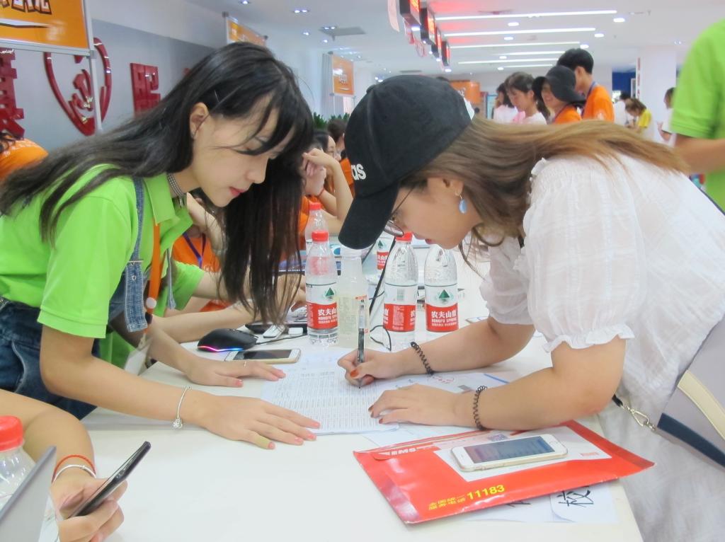 负责带领新生领军训物资的志愿者不断往返惠风苑、和风苑与一站式服务大厅之间,炎炎烈日下,汗流浃背亦无暇顾及,每来一位新生,大家都争相恐后地前去帮忙;有志愿者在各处维持秩序,为有疑问的新生细心解答、亲切指引,贴心地为焦急等待中的家长撑伞;举牌指引新生的志愿者用雄浑嘹亮的嗓子和火样的热情吸引物电学院新生、新生家长的目光……处处热情流动,微笑荡漾。