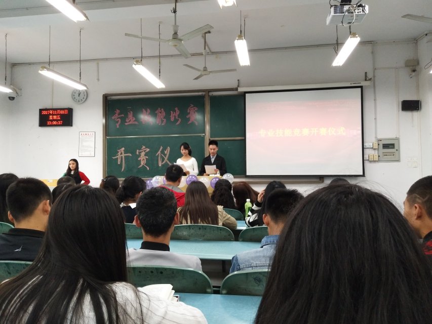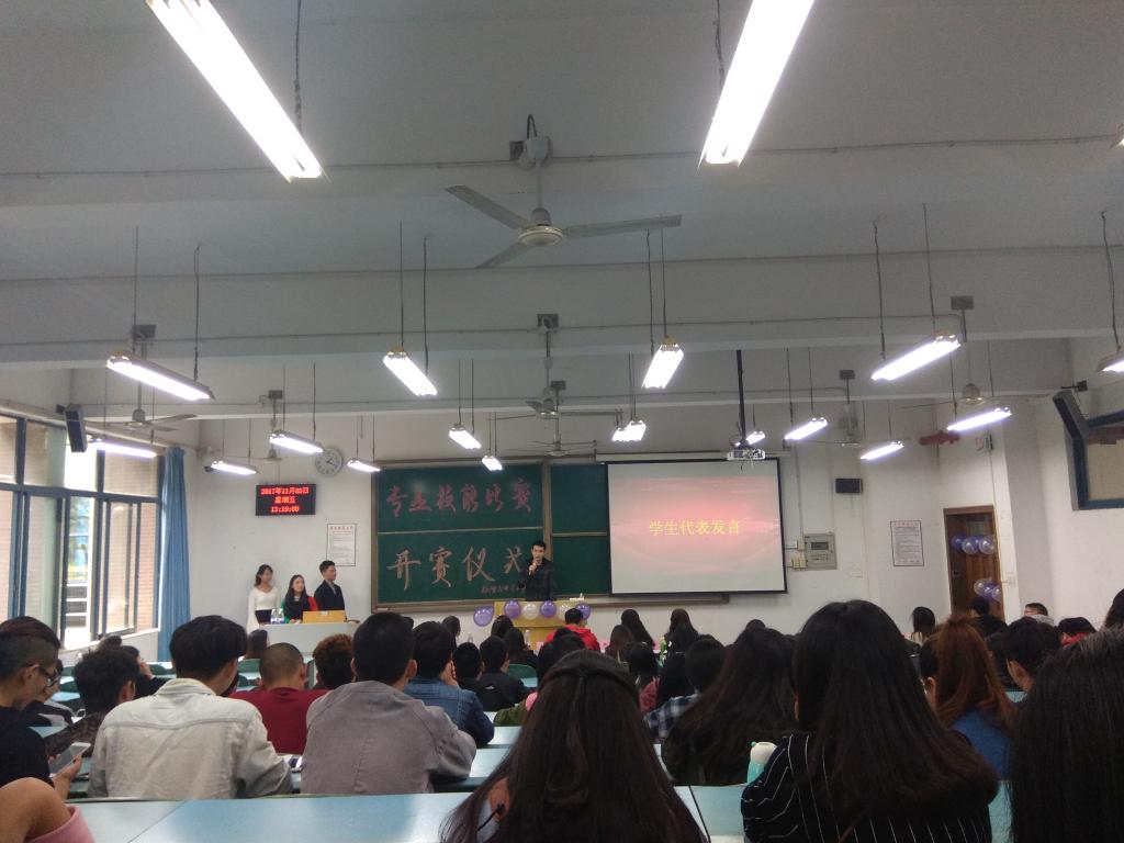 专业技能竞赛由电子科技竞赛和师范生技能大赛组成,其中师范生技能大赛,由三笔字书写、主题演讲、多媒体课件制作、高考试题解答、教具制作、模拟课堂教学六个部分构成。非师范的电子科技竞赛由初赛的创意书递交和决赛的成品检测两轮构成。活动开始时由主持人介绍回顾播放往届比赛视频。接着是指导老师代表罗光教授发言,为选手进行赛前总动员。然后就是往届师范生技能大赛学生代表唐越、往届电子科技大赛学生代表石林分享参赛感悟,交流学习经验。最后是PA视讯团总支书记李青松老师精彩致辞。