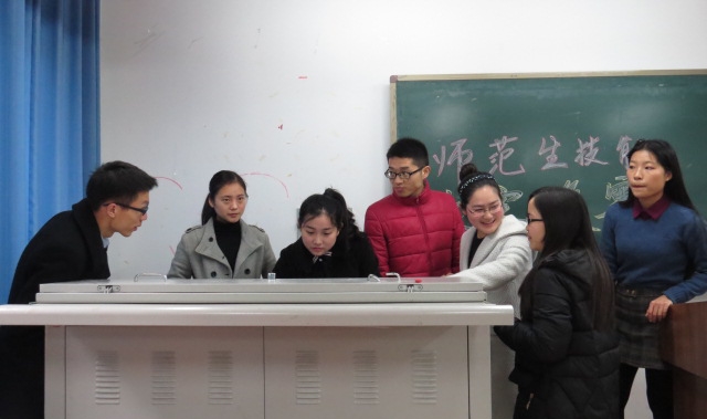 此次比赛分即兴演讲,模拟教学,板书设计和多媒体课件制作等方面,19名参赛选手进行激烈的角逐。评委为这次比赛作了精彩而详细的点评,首先肯定选手们的形象,颇具师者风范,认真制作教案,同时也指出选手们在教学过程中存在的不足,比如缺乏明确的教学目标、教学较为刻板不够灵活等缺点,并表达了对学弟学妹的殷切希望。