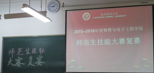 2016年3月24日星期四下午,PA视讯学生会在重庆师范大学12104教室举行了第四届师范生技能大赛复赛。此次比赛由团总支·学生会及学院各领导审批,由团总支·学生会牵头,学习部和师能素质协会承办,还邀请了12级优秀学长学姐魏品伟,他们分别是:钟杰,原物电辩论队队长,现签约梁平中学;张倒红,组织开展过许多大型活动,获得过华夏杯二等奖;张霞,成绩优异,师范生技能扎实;陈金源,签约涪陵最好的中学——涪陵14中。