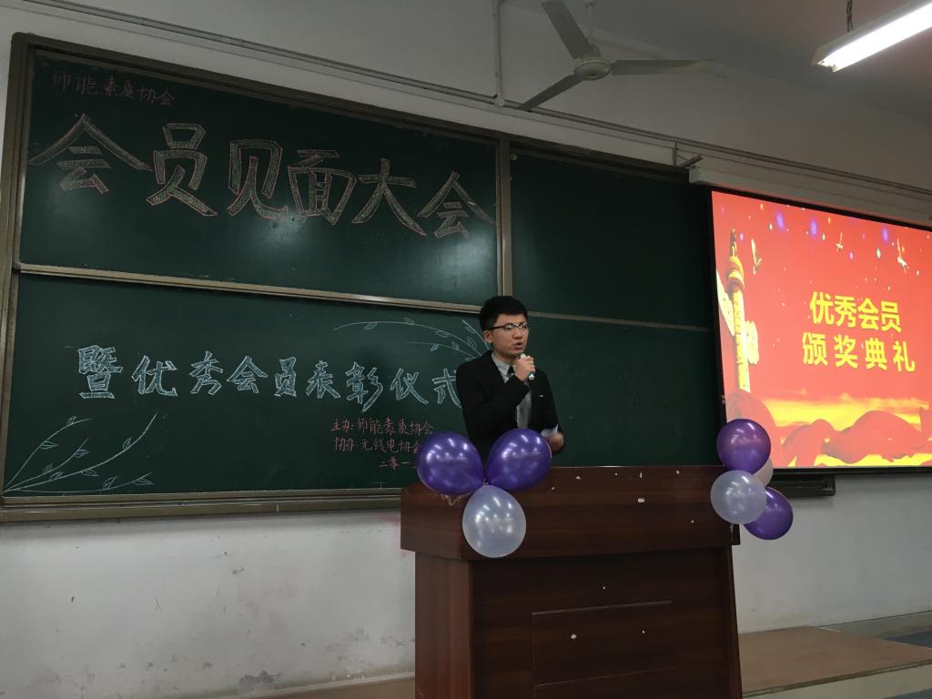 爱心家教、三笔字笔训、说课大赛、教具制作是众所周知的师能素质协会的特色活动。为了让协会会员更多的了解这个协会,知道这个协会的日常工作,了解它的活动安排,让会员放心的加入这个协会。2015年10月10日中午1:00,师能素质协会在弘德楼15102教室举办了会员见面大会。