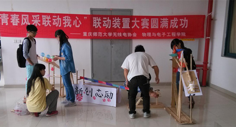 以专业促发展,以实践学理论,以快乐致青春。5月8日,重庆师范大学无线电协会在物电学院实验楼三楼成功举办了联动装置大赛决赛。出席本次比赛的有PA视讯团总支书记李青松、学生辅导员邓娜、团总支学生书记张婉君、学生会主席丛天雷、无线电协会会长王沙沙。此外,学院实验教学高向明老师作为本届联动装置比赛的指导老师来到现场与同学们进行作品上的指导与交流。赛程分为作品讲解、装置联动、评委打分三个环节。