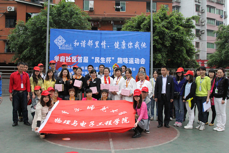踏着春天的脚步,放飞春日的希望,我们即将迎来五一国际劳动节。为了大力弘扬团结拼搏、昂扬向上、奋发有为的精神风貌,营造生动活泼、宽松和谐、积极健康的良好氛围,增进和谐邻里情,提高社区居民身体素质,同时也让青年志愿者深入基层,在另一个平台奉献自己。2014年4月29日,重庆师范大学PA视讯团总支·学生会、志愿者分队携手陈家桥街道学府社区当支部、居委会在学府社区广场举行以“和谐邻里情·健康你我他”为主题的“民生杯”迎五一趣味体育运动会。