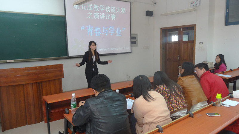 为积极响应学校人才培养“五大计划”的号召,充分落实每一个本科生专业素能提升的政策、方针,物理与电子学院“第五届教学技能大赛”仍在继续!2014年4月9日中午12:50,一场“口才与语言之战”在12104教室精彩上演,PA视讯团总支书记李青松老师及学生工作办公室的全体辅导员老师作为评审为同学们指点迷津。语言表达是作为一名优秀的人民教师不可缺少基本技能,22名参赛选手“以理服人,以情动人”别开生面的演讲让本届教学技能大赛有了一个新的突破。