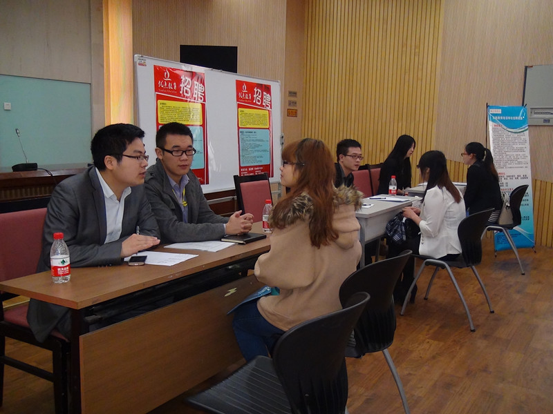 在招聘现场,招聘单位工作人员利用招聘宣传海报展示公司对参加面试者的专业文化、知识水平、气质形象等多方面细节问题的具体要求。他们详细向前来咨询的大学生介绍企业的运营状况、员工工资待遇和工作环境等求职者比较关注的问题,让有意愿求职的大学生与用人单位在沟通交流中得以相互了解。与往年招聘会不同的是,今年部分用人单位增加了面试轮次,旨在多方位多角度考察大学生的综合素养,选拔更优秀的、适合本单位需要的人才。