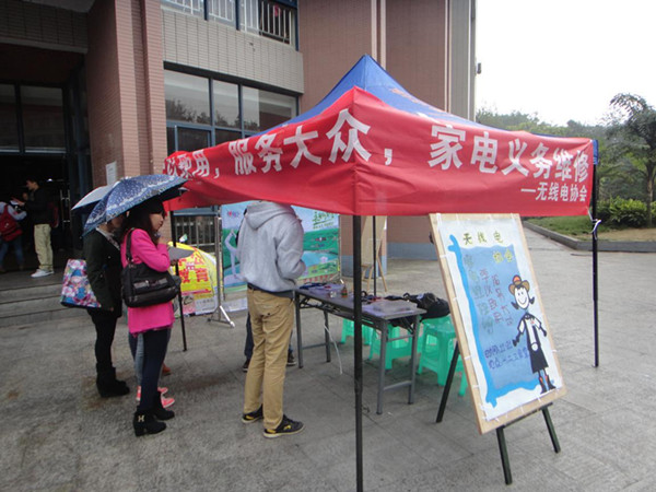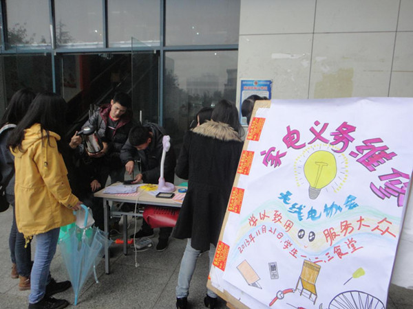 一年好景需记君,最是橙黄橘绿时。以知识建设自身,以实践服务同学,2013年10月21日中午12点,无线电协会所有成员分组来到学生第一、二、三食堂火热开展家电义务维修活动。