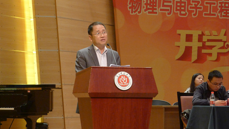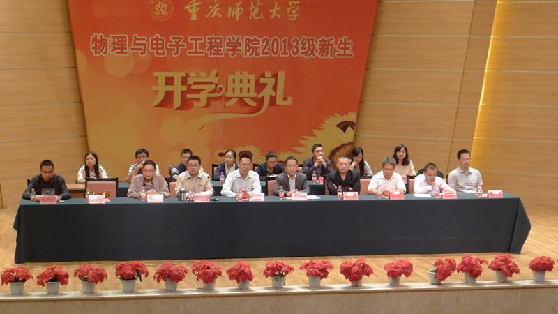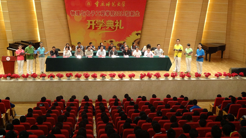 崭新的晨光,迎来了全新的开始;创新的物电,迎来了新鲜的血液。2013年9月25日13:30,重庆师范大学PA视讯2013级新生开学典礼在校友会堂音乐厅隆重举行。院长崔玉亭、学院党总支书记唐敏、学院党总支副书记冉久飞、学院教师团队、辅导员团队以及全体2013级新生参加了此次开学典礼。典礼由学院党总支副书记冉久飞主持。