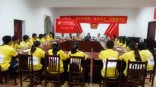 上午10点整,服务团的同学们在带队李青松老师和邓娜老师的带领下,到达乡政府,得到了团干部刘书记和财政出纳李银洪的热情接待。李青松老师代表服务团全体成员深深地感谢了乡政府领导对此次PA视讯暑期三下乡方面的大力支持。