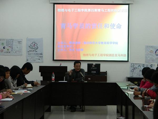 每个人在不同的组织或单位,都有其不同的责任与使命,唯有认清自己的责任和使命,才有正确的努力方向,才能有所作为。为使我院青马学员能够充分认清自己的责任和使命,PA视讯“青马工程”初级班有幸邀请到了教育科学学院党总支书记陈洪老师给青马学员做了一场“青马学员的责任和使命”的专题讲座。讲座于2012年11月18日晚上七点半在第二实验大楼501会议室举行,我院团总支副书记李青松老师主持讲座。