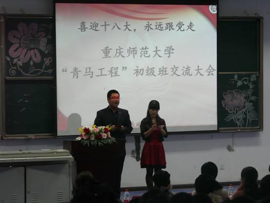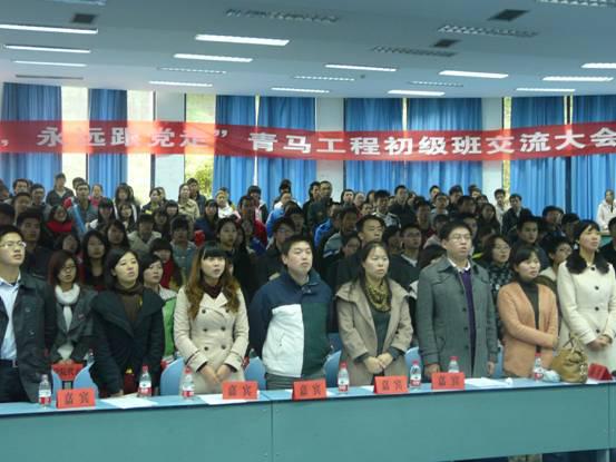 青年马克思主义者培养工程(初级班)是我院思想的一块沃土,为了促进兄弟学院之间青马初级班的交流,相互之间学习进步,在十八大来临之际,我院与外国语、政治、历社、化学五个学院,一同举办了“喜迎十八大,永远跟党走,青马工程初级班交流大会”。本次会议于2012年11月6日中午一点在弘德楼15105隆重举行。出席会议的嘉宾有校团委办公室主任、学校青马工程主要负责人熊宇老师,各学院分管青马初级班的指导老师以及各学院团总支·学生会代表,其中我院团总支副书记李青松老师应邀出席了本次交流大会。