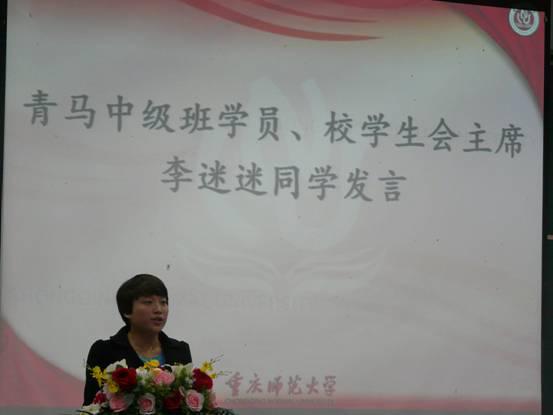 会议在激昂的国歌中拉开帷幕,随后播放了重师青马工程的发展史,紧接着依次展示参会五个学院青马初级班的风采。我院展示主要包括自青马初级班成立到现在,发展的过程,文化的沉淀,以及取得的成果。相比其他兄弟学院,我院展示重在用培养效果,用数据说话,很好的彰显了初级班获得的荣誉和学员的个人成果,有力的突出我院青马工程初级班的实效性。整个展示中,穿插了历社学院的朗诵,可谓锦上添花。之后,青马工程中级班学员、校学生会主席李迷迷同学发言,用切身经历告诉我们通过青马的学习,她在社交能力、思想高度、干部竞争力等方面得到很好的提升。会议的高潮,校团委熊宇老师讲话,他谈到这是我校首次青马初级班交流大会,很新颖也很有意义,也给同学们介绍了我校青马工程的主要管理层面和培养计划,让同学们有了更加明确的学习方向。同时他以学长的身份鼓励大家在大学期间加强社会实践锻炼,以后可以更好的适应社会。一场思想的交流在共青团团歌中圆满结束。会后,所有与会嘉宾合影留恋。