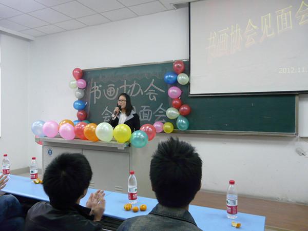 2012年11月1日下午16:30,重庆师范大学书画协会于弘德楼教室12306筹办了新一届的会员见面会活动,参与此次书画协会会员见面会的嘉宾有PA视讯团总支·学生会主席张磊、前一任书画协会会长龙伟、社团联合会督导部副部长廖鹏以及团总支·学生会生活部部长陈青,此次见面会为大家提供了一个多彩的平台,让所有书画爱好的同学们相聚在一起,相互交流,相互学习。