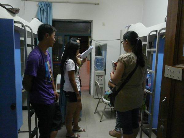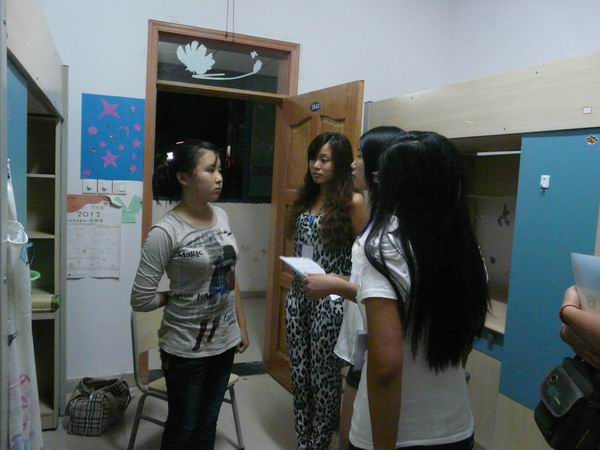 2012年9月7日晚上10:00,PA视讯团总支学生会的12名成员在主席团的带领下,来到了2012级大一新生的宿舍对他们的住宿情况进行了了解,同时带去了物电学院所有人对他们的关心和问候。