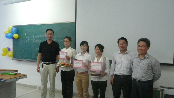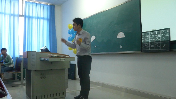 比赛开始,由主持人宣读比赛规则及评分细则。讲课有两部分组成,在正式讲课之前每位选手都有一个简短的演讲。其中有位同学的讲课别出心意,由歌曲《众人划桨开大船》开场,引出主要内容——力的合成,整节课连贯,能很好的与同学互动。随着比赛的进行,讲课也来到了高潮,说话的语调恰到好处,能够很好的吸引观众的注意,并且行为动作协调自然,让人感觉不到紧张。对课题的讲解也很清楚,互动做得很好。每一位选手都有自己的特点,他们敢于站在讲台,这已使他们成功,名次在此刻已变得不再重要,重要的是他们收获了,促进了他们的进步。