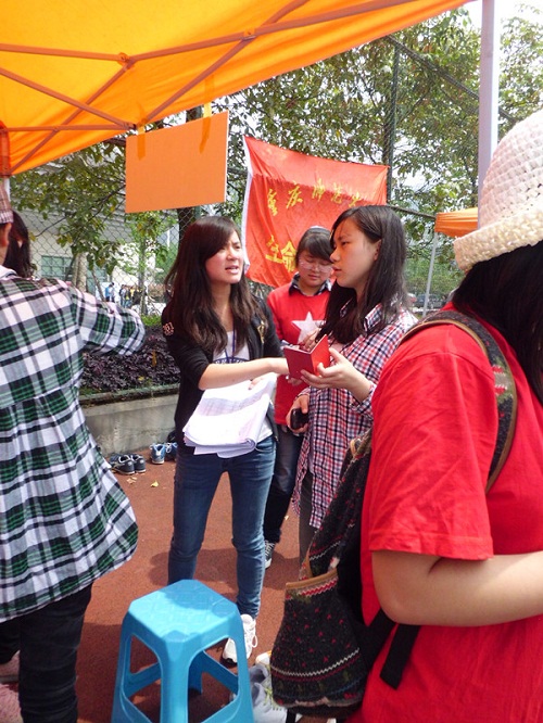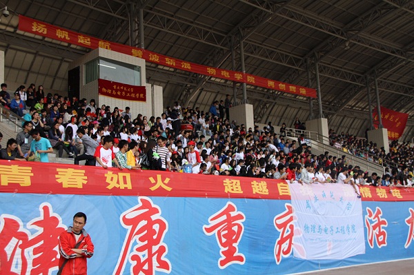 12日下午因为天气原因暂停了运动会,却暂停不了大家的热情。18日下午一点,物电学院的看台上早早的坐满了人,等待着奇迹的发生,力量的冲刺。在操场上,即将比赛的运动员们也精神抖擞,从容自得,为比赛服务的志愿者东奔西走,忙得不亦乐乎。