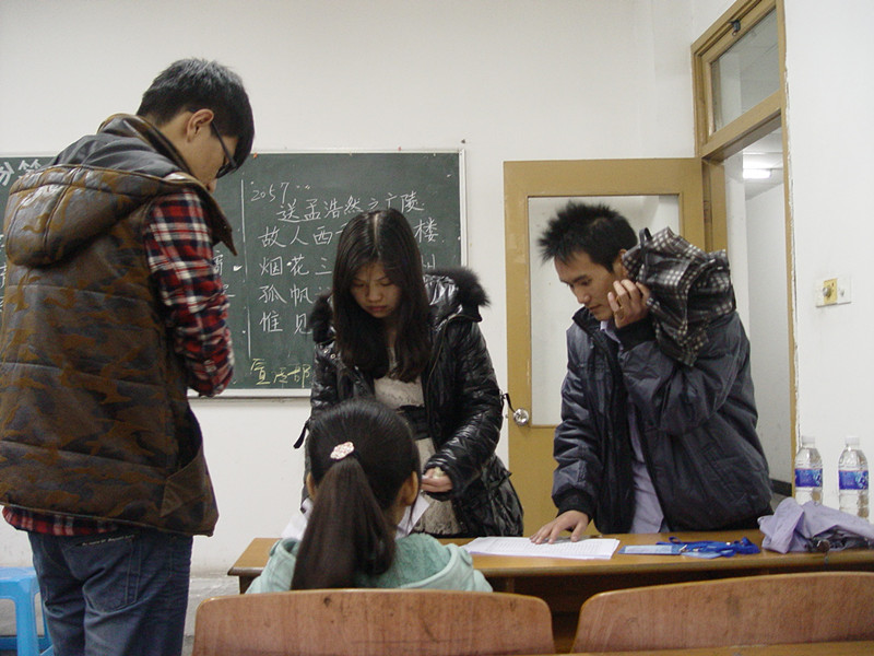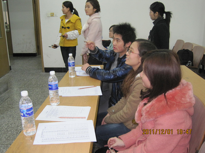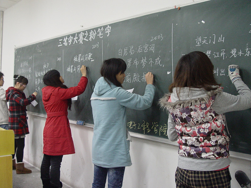 2011年12月1日14:30,PA视讯三笔字大赛在沙坪坝和大学城两个校区同时进行,大赛掀起了一场书万丈豪气,品传统精髓的轩然大波。此次大赛,来自两个赛区三个年级的同学积极的参与进来,参与人数超过280人次。本次比赛有幸邀请到2009级辅导员邓娜老师,2011级班主任蒋小平老师,团总支·学生会书记李佩,及马列部部长汪阳等学生会主要干部前来指导工作,同时邀请到原团总支宣传部部长罗晓,原办公室主任贾立平,原文艺部部长段美清,还有多次获得校书法比赛一等奖的赵树灵及在三笔字大赛中多次获得荣誉的李全朝、赵伯倩等同学来担任粉笔字现场评委。