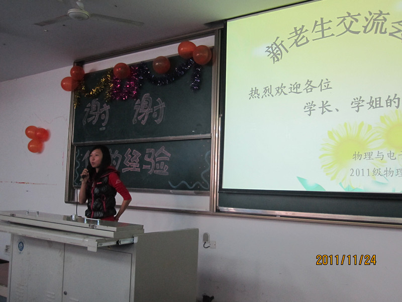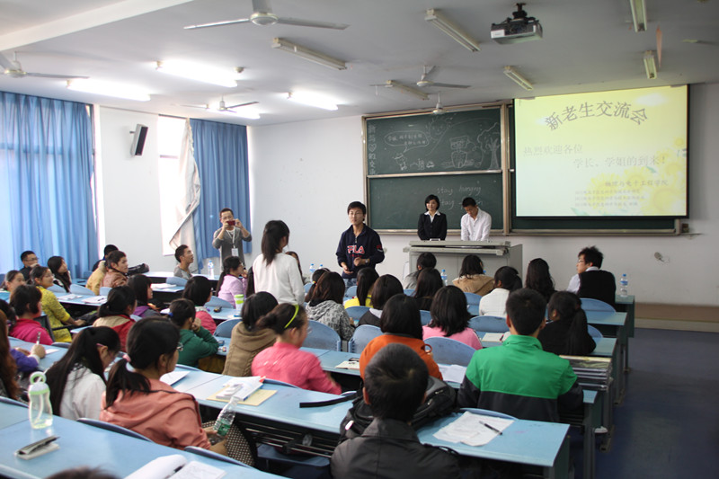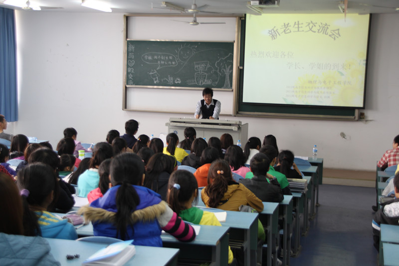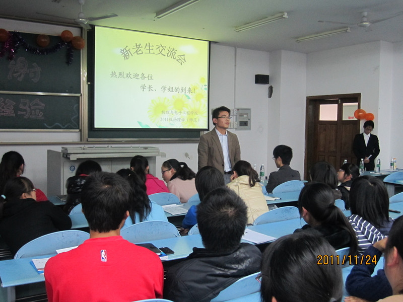 此次由PA视讯团总支学·生会举办,学习部承办的“2011——2012学年度新老生交流会”于2011年11月24日下午2:30,在大学城宏德楼15204和15302拉开帷幕。本次活动旨在传授新生大学生活和学习的经验,帮助新生走出大学迷茫,树立人生目标,使其尽早适应大学生活、融入大学生活。本次活动将分为两个班进行——2011级物理学,2011级电子班。