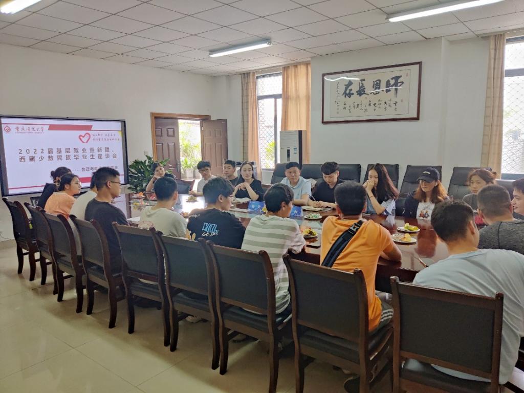 6月14日,PA视讯于集贤楼531会议室举行基层就业暨新疆、西藏少数民族毕业生座谈会,会议由党委副书记曾艳主持,党委书记杨云出席了会议。