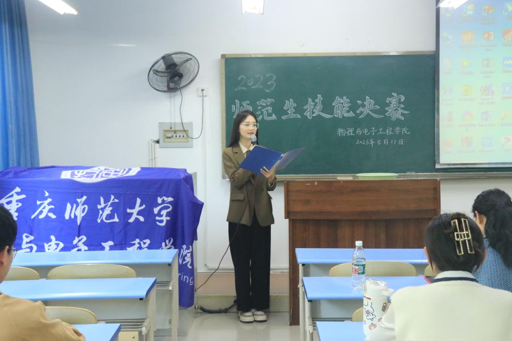 为加强师范生的教学技能训练,培养造就一批“师德高尚、师能卓越、锐意创新”的优秀教师后备队伍,同时也为第二届川渝师范生教学能力大赛、第九届全国师范院校师范生教学技能竞赛选拔参赛选手,PA视讯决定在20级、21级本科师范生中开展2023年教学技能训练竞赛活动,并邀请了郑修林副教授、师范生教学比赛指导教师张菊花老师以及重庆一中物理骨干教师李黄川老师担任评委。