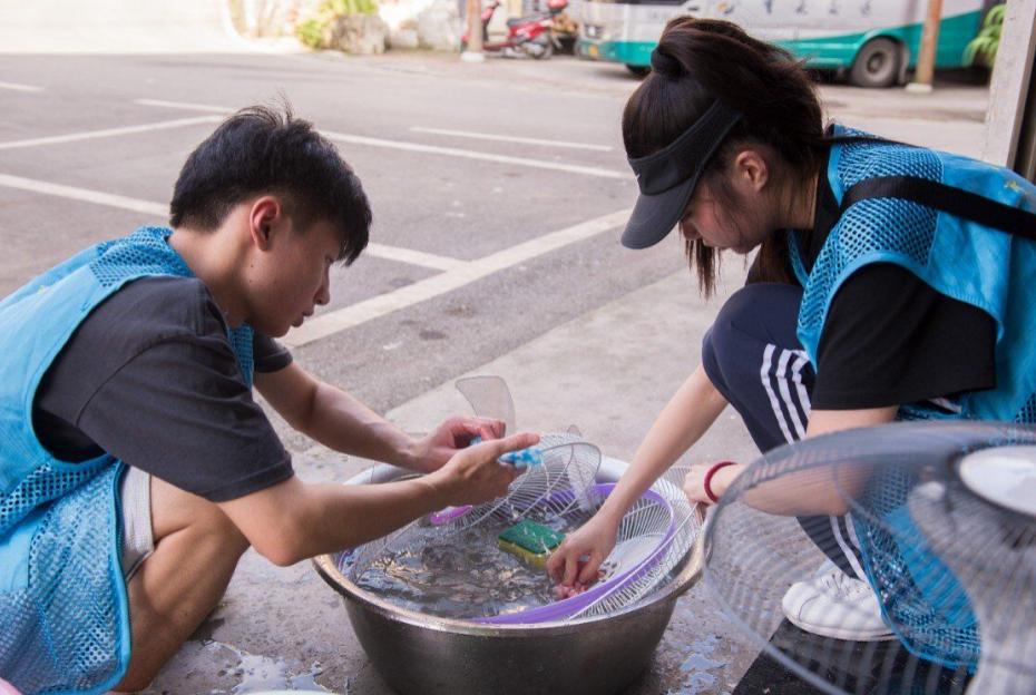 团队成员清洗风扇。受访单位供图
