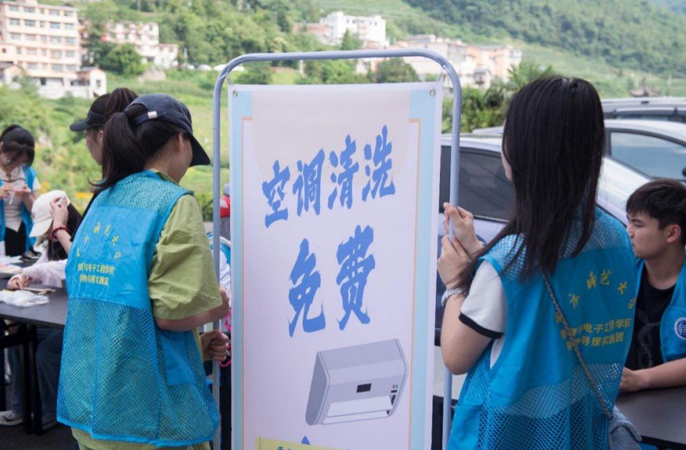 为村民们做好用电宣传的同时,成员们将自身所学的专业电子知识付诸于实践,学以致用,免费为村民们清洗电器、维修电器、检修电路。空调风扇是炎炎夏季的常用电器,而定期清理电器设备灰尘和维护电器设备机身干净也同样是人们容易忽略的用电安全隐患。