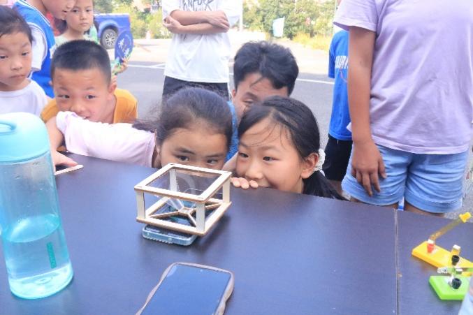 图为小朋友观察实验教具“全息投影”。中国青年网通讯员 周江 供图