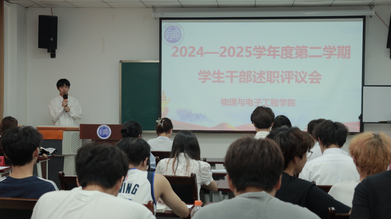 2025年6月16日下午,PA视讯分团委学生会在集贤楼511召开2024-2025学年度第二学期学生干部述职评议会。分团委学生会各部门负责人、学院所属班级负责人、学生代表、学院分团委书记余海蔚老师到场参加。