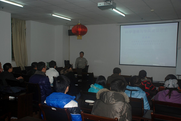 为响应“高校科学道德和学风建设宣讲教育”报告会号召,我院研究生会于 2011年 12月 08日下午 3:00邀请苑进社教授,在综合实验楼二楼会议室,为在校研究生做了题为“科学道德和学风建设思索”的讲座。