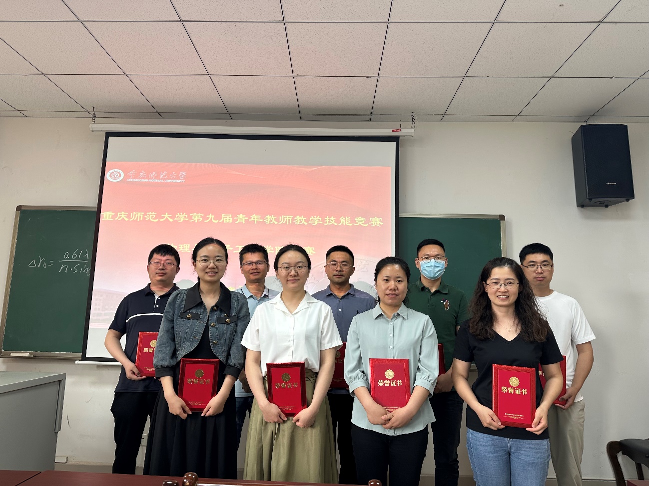比赛结束后,评委老师对选手们的表现进行现场点评,指出教学过程中的优点和不足。经过选手激烈角逐,评委认真评判,物电学院教师教学技能竞赛初赛评选出:一等奖:徐一宁、邓可然;二等奖:朱洪强丁守兵、熊玉立;三等奖:郭盼、唐本镇、蒋丽丹、黄业雄。一等奖获得者徐一宁,邓可然将代表学院参加重庆师范大学第九届青年教师教学技能竞赛。
