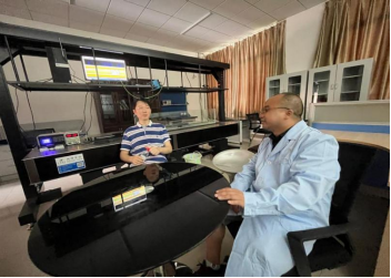 图1.余鹏院长和蒋茂华老师关于课题组实验进展进行交流