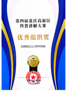2023年4月第四届重庆高新区科普讲解大赛的决赛中,重庆物理学会、重庆师范大学PA视讯以及沙坪坝区人工智能科普基地选送的志愿者李欣颖(物理学2022级本科)和孙凡婷(2022级学科教学物理专业硕士)获得高新区优秀奖,同时学院被评为优秀组织单位。