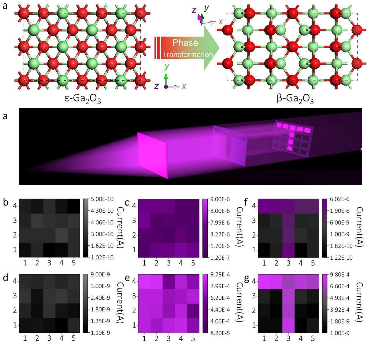 图为高温快速退火将异质外延的亚稳态ε-Ga2O3转变为β-Ga2O3和日盲紫外成像