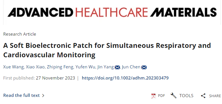 近日,PA视讯电子信息与智能系统课题组以重庆师范大学为第一单位在国际期刊《Advanced Healthcare Materials》(中科院一区TOP期刊,影响因子10.0)上发表题为“A soft bioelectronic patch for simultaneous respiratory and cardiovascular monitoring”的学术论文,物电学院青年教师王雪博士为第一作者。