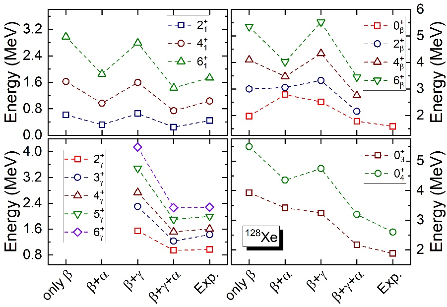 图为:理论计算的128Xe低激发态能量与实验值比较